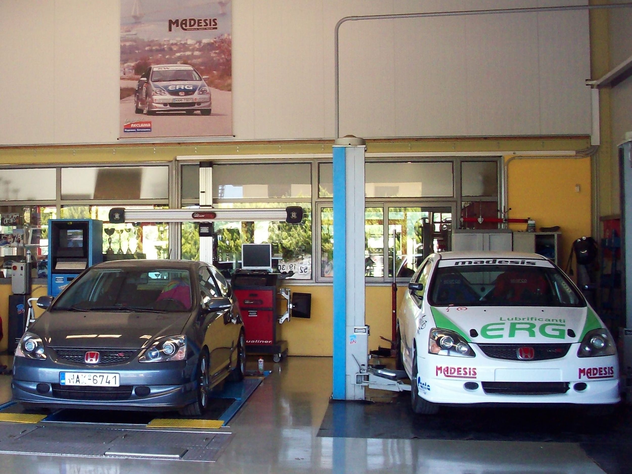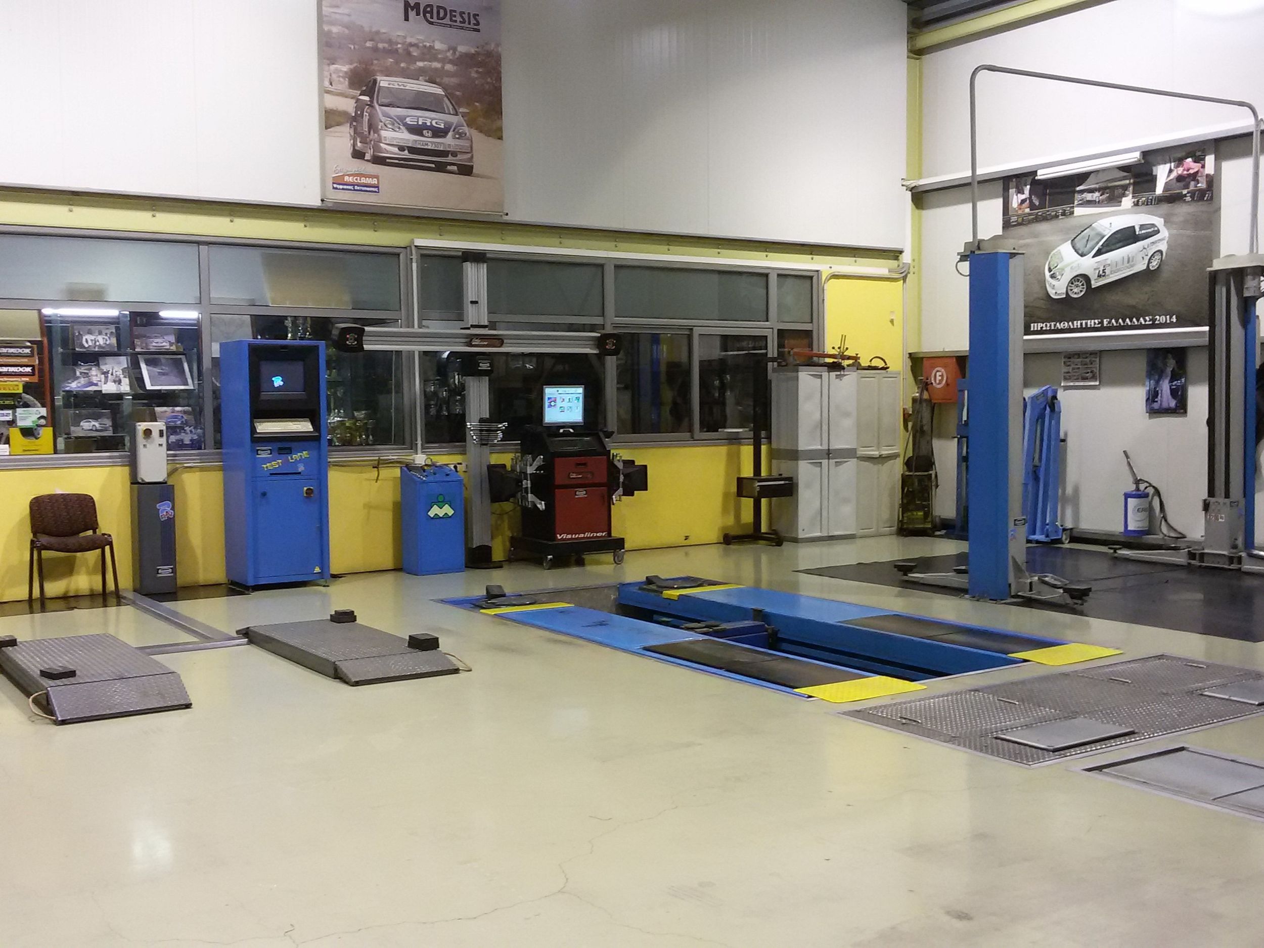 Οι ιδιόκτητες κτιριακές μας εγκαταστάσεις εκ κατασκευής δύναται να εξυπηρετήσουν τις ανάγκες τεχνικών υπηρεσιών που προσφέρει η επιχείρησή μας (πλην φανοποιΐας και βαφής) για όλες τις μάρκες και τους τύπους αυτοκινήτων. Διαθέτουμε προηγμένο τεχνολογικό εξοπλισμό για την διάγνωση των βλαβών κι όλα τα απαραίτητα εργαλεία και μηχανήματα για κάθε αναγκαία τεχνική εργασία, όπως η πλήρης γραμμή ελέγχου για ΚΤΕΟ, με αμορτισερόμετρο και φρενόμετρο.